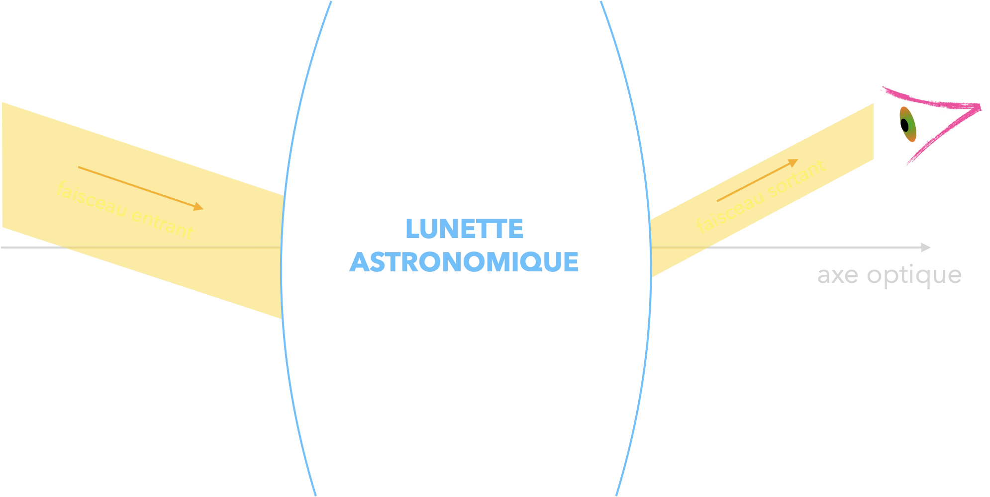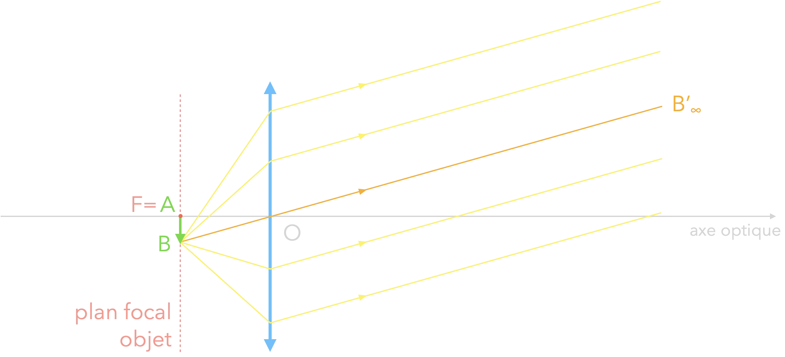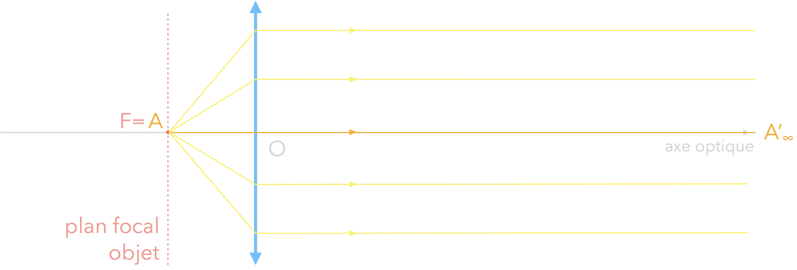Et comme une lunette astronomique regarde des objets très loins, les rayons issus d’un point objet arrivent eux aussi parallèles entre eux.