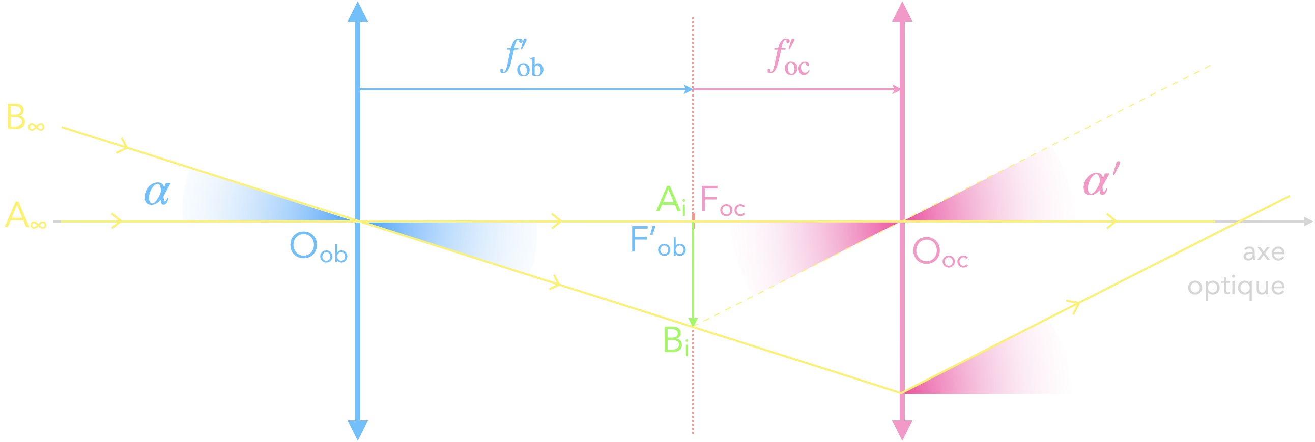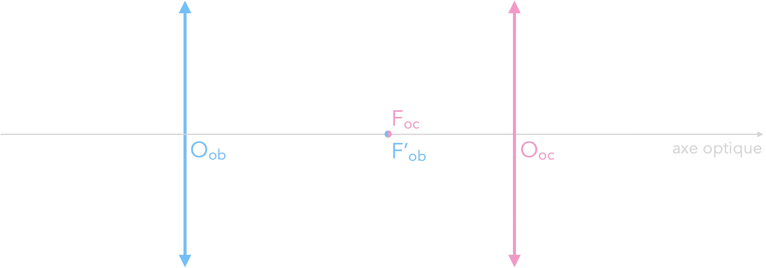 la longueur de la lunette) vaut $f'_\mathrm{ob}+f'_\mathrm{oc}$.